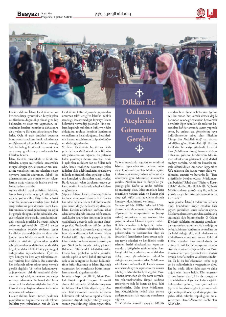 Nebe Gazetesi 278 Sayı Baş Makale Dikkat Et! Onların Ateşlerini Görmemen Gerekir
